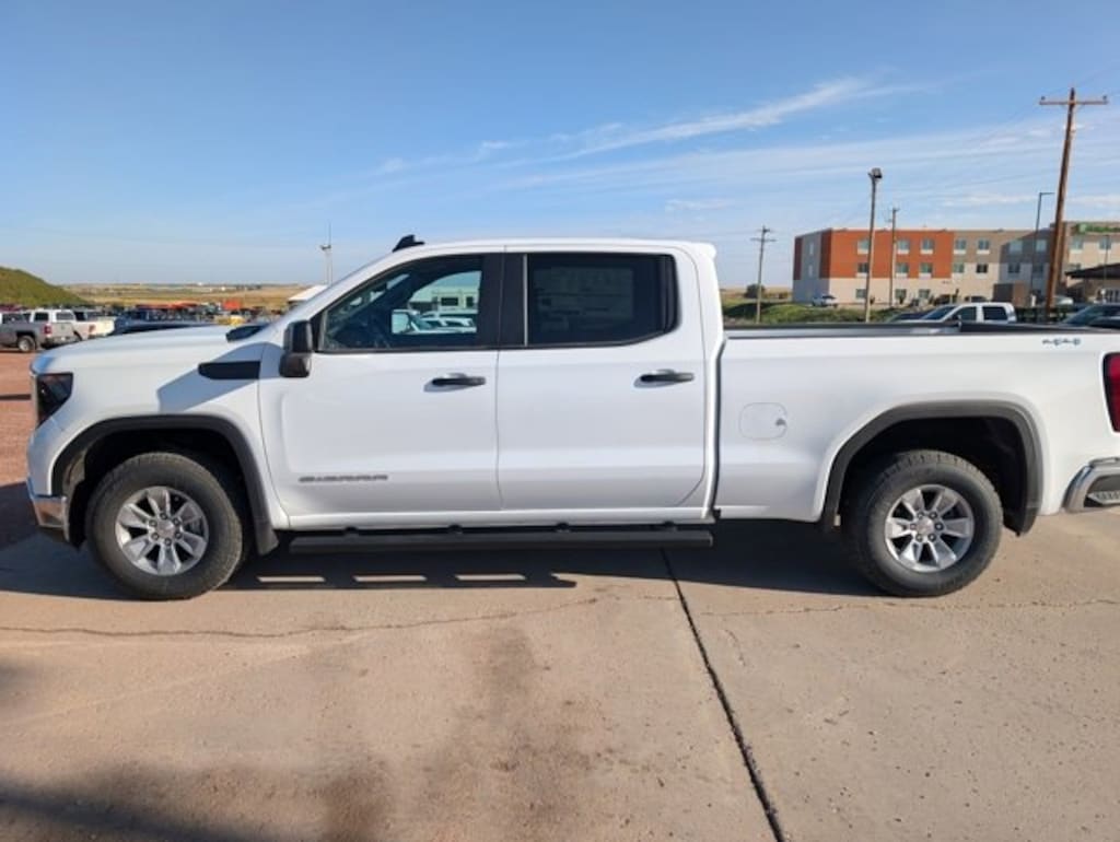 10-Speed Automatic, 4WD, Black Cloth, 10-Way Power Driver Seat Adjuster w/Lumbar, 120-Volt Bed Mounted Power Outlet, 120-Volt Interior Power Outlet, 170 Amp Alternator, 2 Charge/Data USB Ports, 2 Type-C Charge-Only Rear USB Ports, 220 Amp Alternator, 3.23 Rear Axle Ratio, 3.42 Rear Axle Ratio, 4-Way Manual Driver Seat Adjuster, 4-Way Manual Passenger Seat Adjuster, 4-Wheel Disc Brakes, 6 Speakers, 6-Speaker Audio System Feature, ABS brakes, Air Conditioning, AM/FM radio, Apple CarPlay/Android Auto, Auto High-beam Headlights, Auto-Locking Rear Differential, Automatic Emergency Braking, Auxiliary External Transmission Oil Cooler, Black Assist Steps, Brake assist, Buckle to Drive, Bumpers: chrome, Chrome Header w/Flat Black Grille Insert Bars, Color-Keyed Carpeting Floor Covering, Compass, Convenience Package, Deep-Tinted Glass, Delay-off headlights, Driver door bin, Dual front impact airbags, Dual front side impact airbags, Electric Rear-Window Defogger, Electronic Stability Control, Emergency communication system: OnStar, External Engine Oil Cooling, EZ Lift Power Lock & Release Tailgate, Following Distance Indicator, Forward Collision Alert, Front 40/20/40 Split-Bench Seat, Front anti-roll bar, Front Center Armrest w/Storage, Front Frame-Mounted Black Recovery Hooks, Front License Plate Kit, Front Pedestrian Braking, Front reading lights, Front Rubberized-Vinyl Floor Mats, Front wheel independent suspension, Fully automatic headlights, HD Rear Vision Camera, Heated Power-Adjustable Outside Mirrors, Hitch Guidance, Illuminated entry, Integrated Trailer Brake Controller, IntelliBeam Automatic High Beam On/Off, Lane Keep Assist w/Lane Departure Warning, LED Cargo Area Lighting, Low tire pressure warning, Occupant sensing airbag, OnStar Services Capable, Outside temperature display, Overhead airbag, Overhead console, Panic alarm, Passenger door bin, Passenger vanity mirror, Power Door Locks, Power Front Windows w/Driver Express Up/Down, Power Front Windows w/Passenger Express Down, Power Rear Windows w/Express Down, Power steering, Power windows, Preferred Equipment Group 1SA, Pro Value Package, Push Button Start, Radio data system, Radio: GMC Infotainment Audio System, Rear reading lights, Rear Rubberized-Vinyl Floor Mats, Rear step bumper, Rear Wheelhouse Liners, Remote Keyless Entry, Remote keyless entry, SiriusXM Trial Subscription, Solar Absorbing Tinted Glass, Speed control, Speed-sensing steering, Split folding rear seat, Standard Suspension Package, Tachometer, Tilt steering wheel, Traction control, Trailering Package, Trip computer, Variably intermittent wipers, Vinyl Seat Trim, Voltmeter, Wheels: 17 x 8 Bright Silver Painted Aluminum, Wheels: 17 x 8 Silver Painted Steel, Wi-Fi Hotspot Capable, Wireless Apple CarPlay/Wireless Android Auto, 10-Speed Automatic, 4WD, Black Cloth.
