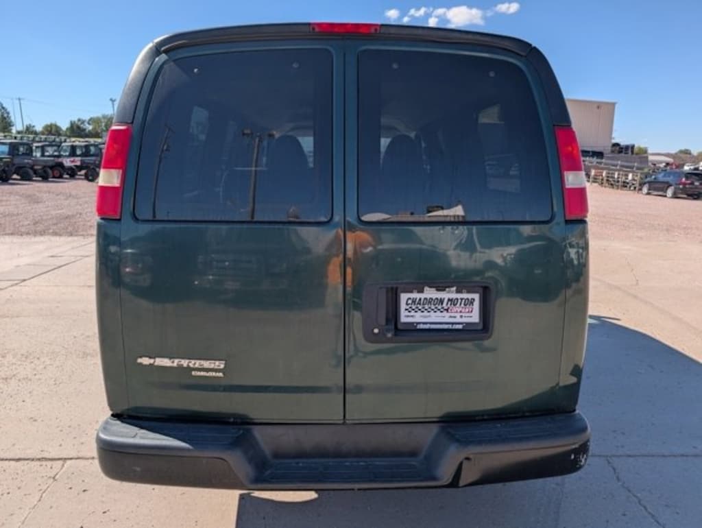 2014 Chevrolet Express 1500 LS Passenger Dark Green Metallic RWD Vortec 5.3L V8 SFI Flex Fuel 4-Speed Automatic with OverdriveFeatures: 145 Amp Alternator, 17 x 7 Steel Wheels, 2 Speakers, 3.42 Rear Axle Ratio, 3rd row seats: bench, 4-Wheel Disc Brakes, 8-Passenger Seating (2-3-3 Seating Configuration), 8-Point Digital Compass, ABS brakes, Air Conditioning, AM/FM radio, AM/FM Stereo w/Seek & Scan, Auxiliary Lighting, Convenience Package, Cruise Control, Custom Vinyl Seat Trim, Delay-off headlights, Driver & Front Passenger Padded Visors, Driver door bin, Driver's Seat Mounted Armrest, Dual front impact airbags, Electric Rear-Window Defogger, Electronic Stability Control, Emergency communication system, Front anti-roll bar, Front Bucket Seats, Front Reclining High-Back Bucket Seats, Front wheel independent suspension, Full-Floor Color-Keyed Carpeting, Fully automatic headlights, Low tire pressure warning, Overhead airbag, Passenger door bin, Passenger seat mounted armrest, Power steering, Power windows, Preferred Equipment Group 1LS, Reading Lights, Rear Air, Rear Auxiliary Heater, Rear Vision Camera, Reclining Front Bucket Seats w/Inboard Armrests, Tachometer, Tilt Steering Wheel, Traction control, Trip computer, Underhood Lights, Variably intermittent wipers, Voltmeter.Priced below KBB Fair Purchase Price!Come To www.GMCofChadron.com To See Our Specials!! Call us at (308)432-9004 For Help with Any of Our Departments!!FREE DELIVERY UP TO 300 MILES!!!Awards:* 2014 KBB.com Brand Image AwardsReviews:* If youâre looking for a time-tested van that can handle almost any task in any weather, the 2014 Chevy Express Van is for you. Its traditional van profile makes it easier to park in smaller garages, and unlike its competitors, the Express offers a choice of gasoline-, natural gas- and diesel-powered engines. Source: KBB.com
