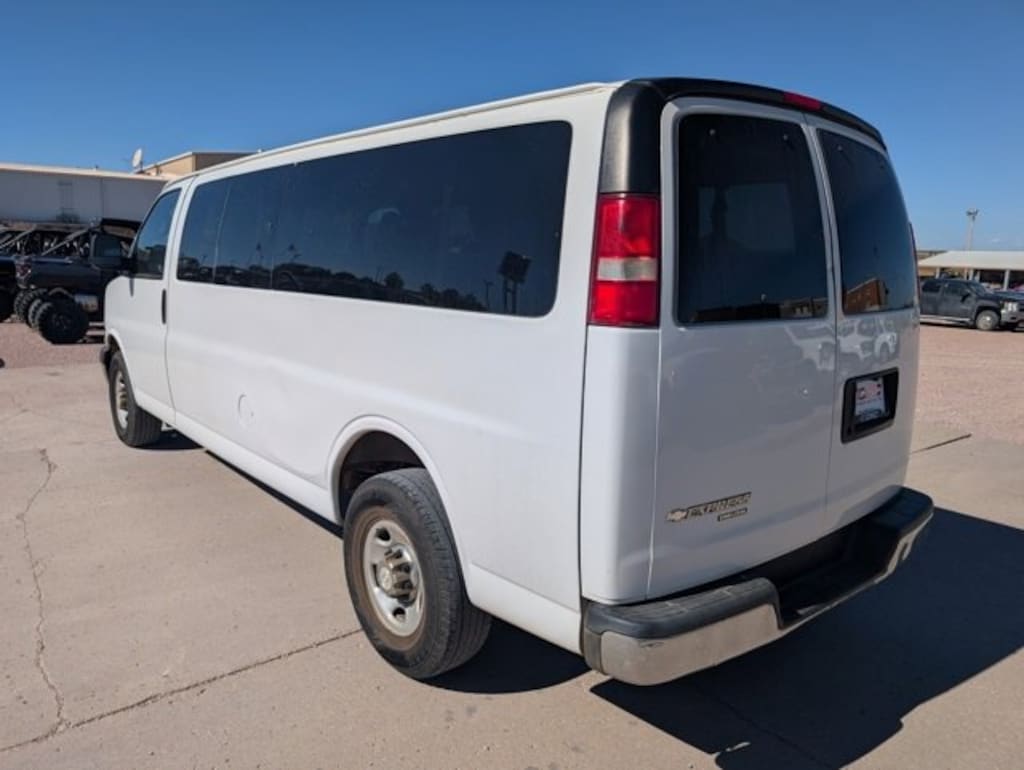 2016 Chevrolet Express 3500 LT Passenger Summit White RWD Vortec 4.8L V8 SFI 6-Speed Automatic HD with Electronic OverdriveFeatures: 12-Passenger Seating (2-3-3-4 Seating Config), 145 Amp Alternator, 15-Passenger Seating (2-3-3-3-4 Seating Config), 16 x 6.5 Steel Wheels, 2 Speakers, 3.42 Rear Axle Ratio, 3rd row seats: bench, 4-Wheel Disc Brakes, 4th-Row Bench Seat, 8-Point Digital Compass, ABS brakes, Air Conditioning, AM/FM radio, Bluetooth® For Phone, Bumpers: chrome, Chrome Appearance Package, Chrome Grille, Compass, Convenience Package, Cruise Control, Custom Cloth Seat Trim, Delay-off headlights, Deluxe Console, Driver & Front Passenger Cloth Padded Visors, Driver door bin, Driver vanity mirror, Driver's Seat Mounted Armrest, Dual Composite Halogen Headlamps, Dual front impact airbags, Dual front side impact airbags, Electronic Stability Control, Emergency communication system: OnStar, Front & Rear Chrome Bumpers w/Step-Pad, Front anti-roll bar, Front Bucket Seats, Front reading lights, Front wheel independent suspension, Full-Floor Color-Keyed Carpeting, Fully automatic headlights, Illuminated entry, Inside Rear-View Manual Day/Night Mirror, Leather-Wrapped Steering Wheel, Low tire pressure warning, Occupant sensing airbag, Overhead airbag, Panic alarm, Passenger cancellable airbag, Passenger door bin, Passenger seat mounted armrest, Passenger vanity mirror, Power steering, Power windows, Preferred Equipment Group 1LT, Radio: AM/FM Stereo w/MP3 Player/Seek & Scan, Reading Lights, Rear Air, Rear air conditioning, Rear Auxiliary Heater, Rear reading lights, Reclining Front Bucket Seats w/Inboard Armrests, Remote keyless entry, SiriusXM Satellite Radio, Speed control, Steering Wheel Mounted Audio Controls, Tachometer, Tilt Steering Wheel, Tilt steering wheel, Traction control, Trip computer, Underhood Lights, USB Port Audio System Feature, Variably intermittent wipers, Voltmeter, Wheel Trim w/Chrome Center Caps.Clean CARFAX.Odometer is 8630 miles below market average!Come To www.GMCofChadron.com To See Our Specials!! Call us at (308)432-9004 For Help with Any of Our Departments!!FREE DELIVERY UP TO 300 MILES!!!