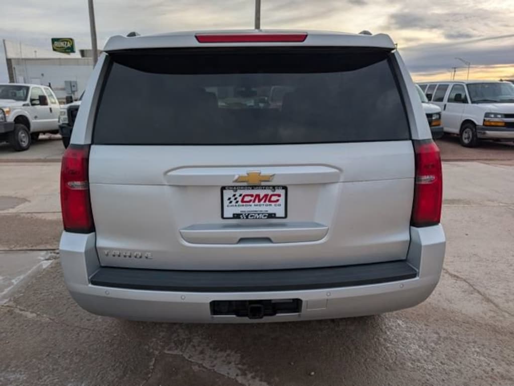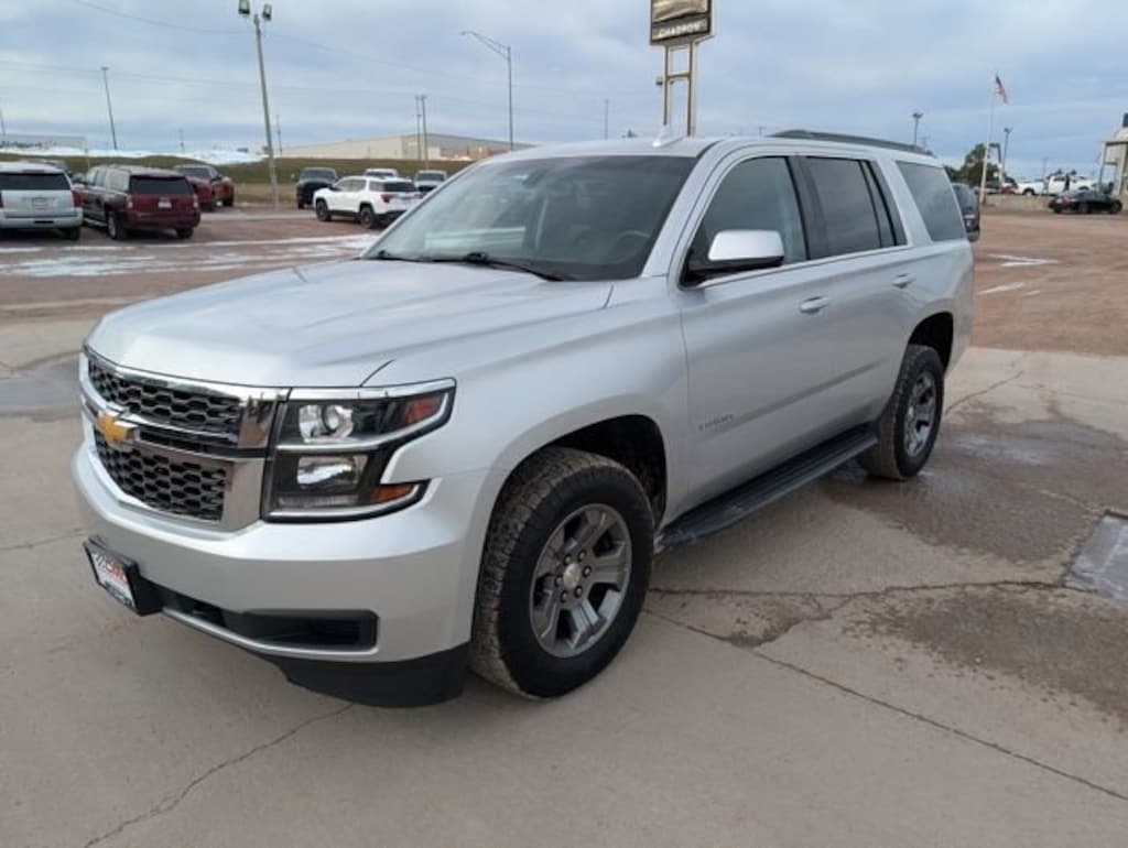 2019 Chevrolet Tahoe LS Silver Ice Metallic 4WD EcoTec3 5.3L V8 6-Speed Automatic Electronic with OverdriveFeatures: 4WD, Jet Black w/Cloth Seat Trim, 12-Volt Auxiliary Power Outlet Delete, 18 x 8.5 Aluminum Wheels, 1st & 2nd Row Color-Keyed Carpeted Floor Mats, 2 Front Frame-Mounted Black Recovery Hooks, 2nd Row 60/40 Split-Folding Manual Bench, 3-Passenger Front 40/20/40 Split-Bench Seat, 3.08 Rear Axle Ratio, 3rd Row Manual 60/40 Split-Folding Fold Flat Bench, 3rd Row Passenger Seat Delete, 3rd row seats: split-bench, 4-Wheel Antilock Disc Brakes w/Brake Assist, 4-Wheel Disc Brakes, 5 12-Volt Auxiliary Power Outlets, 6 Speakers, 6-Speaker Audio System Feature, ABS brakes, Air Conditioning, Alloy wheels, AM/FM radio: SiriusXM, Apple CarPlay/Android Auto, Automatic temperature control, Black Assist Steps, Bluetooth® For Phone, Brake assist, Bumpers: body-color, Cargo Net, CD player, Color-Keyed Carpeting Floor Covering, Compass, Custom Edition, Delay-off headlights, Driver & Front Passenger Airbags, Driver door bin, Driver Inboard & Front Passenger Airbags, Driver vanity mirror, Dual front impact airbags, Dual front side impact airbags, Electronic Cruise Control w/Set & Resume Speed, Electronic Stability Control, Emergency communication system: OnStar and Chevrolet connected services capable, Extended-Range Remote Keyless Entry, Exterior Parking Camera Rear, Floor Console, Front anti-roll bar, Front Bucket Seats, Front Center Armrest, Front dual zone A/C, Front High-Back Reclining Bucket Seats, Front Passenger 6-Way Power Seat Adjuster, Front reading lights, Front wheel independent suspension, Fully automatic headlights, Grille w/Chrome Horizontal Louver Insert (LPO), HD Radio, Heated door mirrors, Illuminated entry, Leather-Wrapped Steering Wheel, License Plate Front Mounting Package, Low tire pressure warning, Occupant sensing airbag, Outside temperature display, Overhead airbag, Overhead console, Panic alarm, Passenger door bin, Passenger vanity mirror, Power door mirrors, Power driver seat, Power passenger seat, Power steering, Power windows, Preferred Equipment Group 1LS, Premium audio system: Chevrolet MyLink, Premium Cloth Seat Trim, Premium Smooth Ride Suspension Package, Radio: Chevrolet Infotainment AM/FM Stereo, Rain sensing wipers, Rear air conditioning, Rear anti-roll bar, Rear Park Assist w/Audible Warning, Rear reading lights, Rear seat center armrest, Rear window defroster, Rear window wiper, Remote keyless entry, Remote Vehicle Start, Roof rack: rails only, Roof-Mounted Luggage Rack Side Rails, Security system, Single-Slot CD/MP3 Player, SiriusXM Radio, Skid Plate Package, Speed control, Speed-sensing steering, Split folding rear seat, Spoiler, Steering wheel mounted audio controls, Tachometer, Tilt steering wheel, Traction control, Trip computer, Variably intermittent wipers, Voltmeter, Wheels: 18 x 8.5 Painted Aluminum, 4WD, Jet Black w/Cloth Seat Trim.Clean CARFAX.Odometer is 9656 miles below market average!Come To www.GMCofChadron.com To See Our Specials!! Call us at (308)432-9004 For Help with Any of Our Departments!!FREE DELIVERY UP TO 300 MILES!!!Awards:* JD Power Initial Quality Study * 2019 KBB.com Best Resale Value Awards