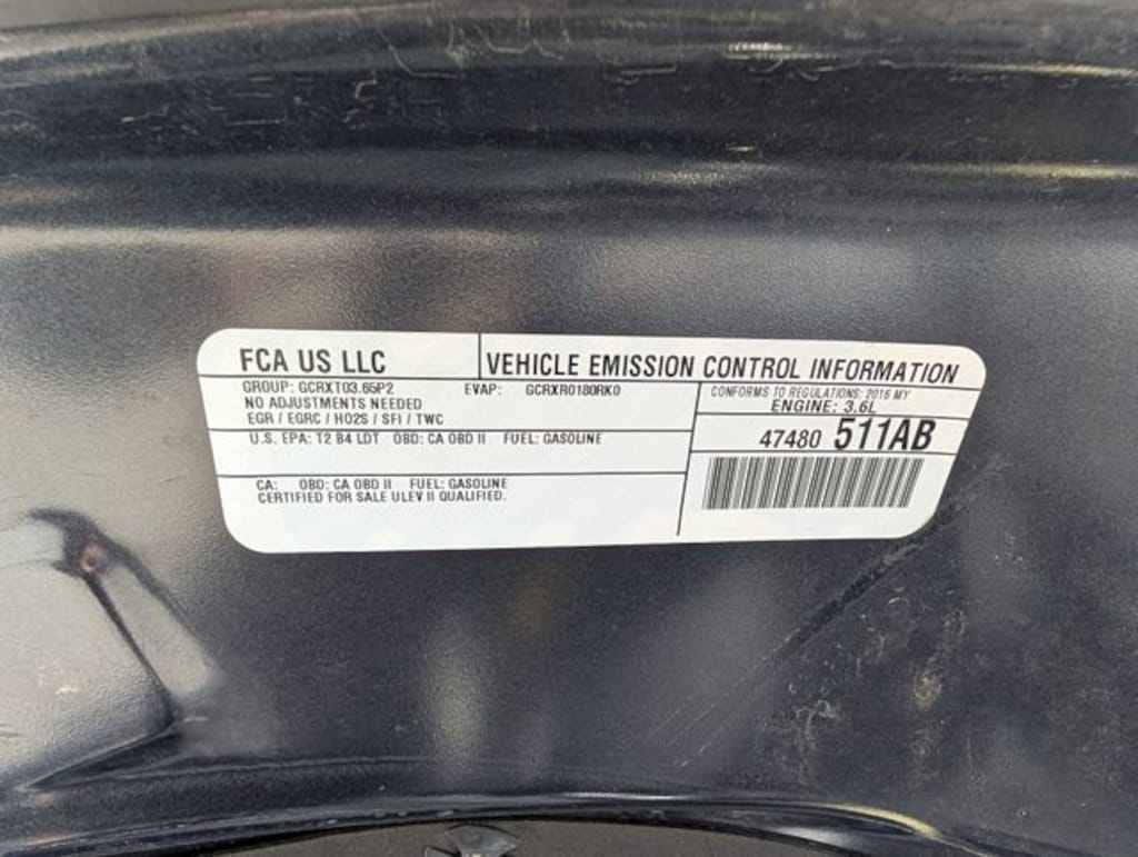 Features: 4WD, 17 x 8.0 Aluminum Wheels, 3.45 Rear Axle Ratio, 4-Wheel Disc Brakes, 6 Speakers, ABS brakes, Air Conditioning, Alloy wheels, AM/FM radio, Anti-whiplash front head restraints, Automatic temperature control, Brake assist, Bright Side Roof Rails, Bumpers: body-color, Cloth Low-Back Bucket Seats, Compass, Delay-off headlights, Driver door bin, Driver vanity mirror, Dual front impact airbags, Dual front side impact airbags, Electronic Stability Control, For Details Visit DriveUconnect.com, Four wheel independent suspension, Front anti-roll bar, Front Bucket Seats, Front Center Armrest w/Storage, Front dual zone A/C, Front fog lights, Front reading lights, Fuel Tank Skid Plate Shield, Fully automatic headlights, Heated door mirrors, Hill Descent Control, Illuminated entry, Knee airbag, Leather Shift Knob, Low tire pressure warning, Manufacturer's Statement of Origin, Normal Duty Suspension, Occupant sensing airbag, Off-Road Adventure I, Outside temperature display, Overhead airbag, Overhead console, Panic alarm, Passenger door bin, Passenger vanity mirror, Power 4-Way Driver Lumbar Adjust, Power 8-Way Driver/Manual Passenger Seat, Power door mirrors, Power steering, Power windows, Quadra-Trac II 4WD System, Quick Order Package 23E, Radio data system, Radio: Uconnect 5.0, Rear anti-roll bar, Rear reading lights, Rear seat center armrest, Rear window defroster, Rear window wiper, Remote keyless entry, Selec-Terrain System, Speed control, Speed-Sensitive Wipers, Split folding rear seat, Spoiler, Steering wheel mounted audio controls, Tachometer, Telescoping steering wheel, Tilt steering wheel, Tow Hooks, Traction control, Trail Rated Badge, Trip computer, Variably intermittent wipers, 4WD.